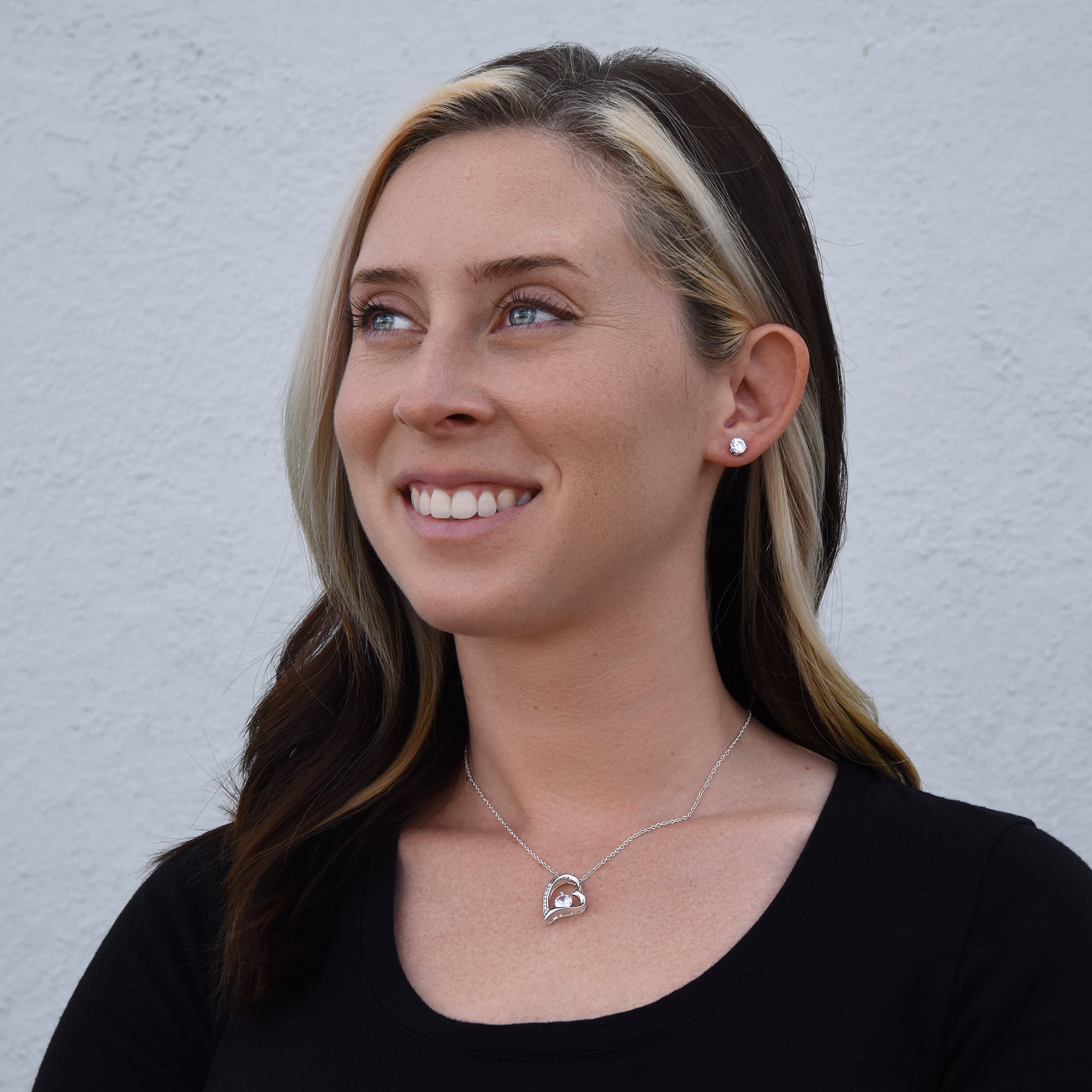 The dazzling Forever Love Necklace is sure to make her heart melt! This necklace features a stunning 6.5mm CZ crystal surrounded by a polished heart pendant embellished with smaller crystals to add extra sparkle and shine. Beautifully crafted with either a white gold or yellow gold finish, be sure to give her a classic gift she can enjoy everyday. 14k white gold finish 6.5mm round cut cubic zirconia stone Pendant dimensions: 0.8" (2.2cm) height / 0.7" (1.8cm) width Adjustable chain length: 18" - 22" (45.72cm - 55.88cm) Lobster clasp attachment Your piece is lovingly packaged in a complimentary soft touch box for easy gifting. Elevate your presentation by upgrading to the mahogany style luxury box, which features a brilliant LED spotlight.
